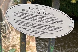 On this spot on a chilly winter’s night in 1845, while returning from an evening drinking in a local pub, William Thomson, who would later go on to become Lord Kelvin, one of the greatest scientists ever to study at Glasgow University, tripped and fell into the river below. In doing so, he instantly became the coldest thing in the entire universe, and thus the concept of Absolute Zero was born.